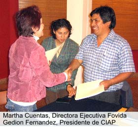 con la presencia de miembros de la Directiva de CIAP encabezados por el Presidente Gedion Fernandez Nolasco y los directivos de FOVIDA encabezado por su Directora Ejecutiva Sra. Martha Cuentas Aci.